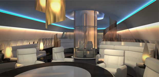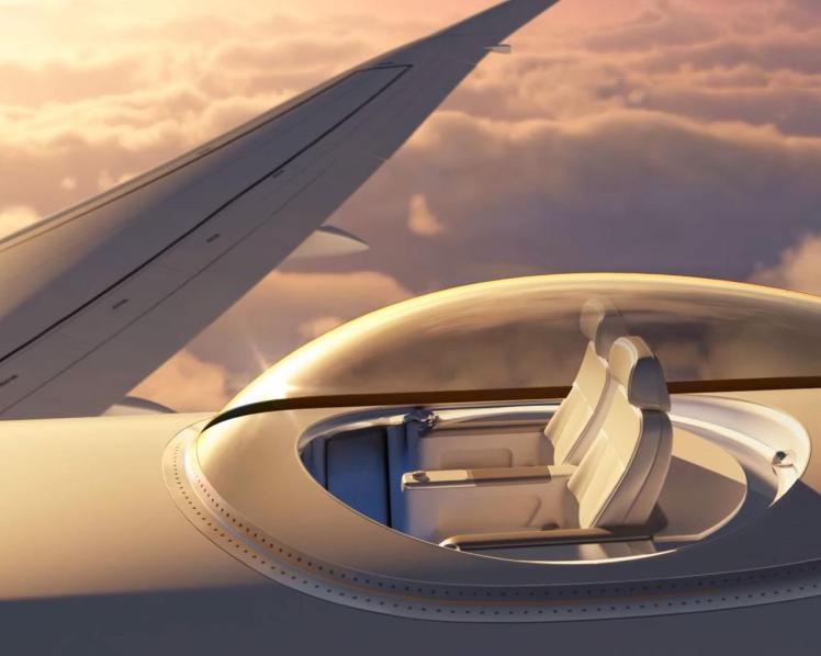 この構想のデザインを購入した飛行機の持ち主は’涙の雫の天蓋’とロマンチックに名付けられたポッドに達する通路を「エレベーター」にするか「階段」にするか決めます。(そのポッドはどうやら「涙の粒」の形のデザインらしいです。)それから座席を一人用か二人用にするかを決めます。