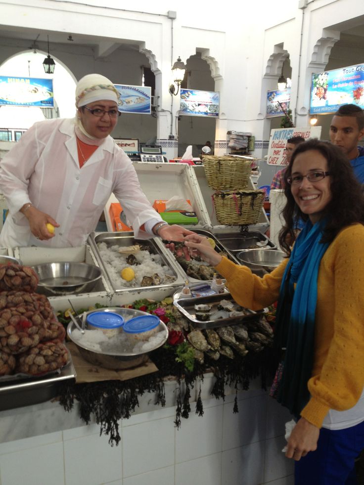 カサブランカの中央市場では生ガキをその場で食べさせてくれる店があります。