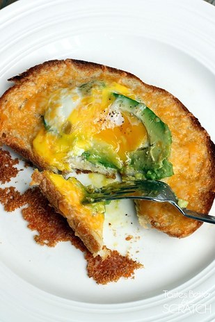 14. アボカドと卵がパンの中に埋め込まれた謎のトースト。誰がアボカドはトーストの上にのせないといけないって言った?と言わんばかりの荒技。