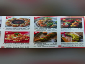 人気はやっぱりカリフォルニアロールやシュリンプ天ぷらの寿司。ウニやいくらなんか頼んだらすごく高くなってしまう。