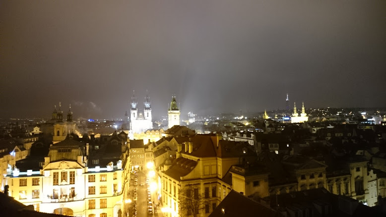 その後はあまり個人的に興味を感じない天文学に関する展示をみつつ、塔を登って行く。結構な階段数を登り、そろそろ飽きてきたころにクライマックス、プラハの夜景が一望できる塔の頂上にたどり着く。塔の外に出る事ができ、プラハ城の綺麗な写真が撮れる。